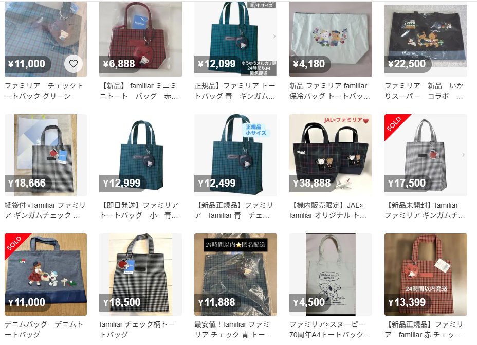 有楽町マルイのファミリアで整理券を取り合っている動画を偶然見たんだけど、 男性の手から無理やり奪おうとする姿が映っていて、見てて不快になる。 そして案の定、メルカリには転売が並ぶという、いつもの流れ🐭